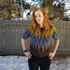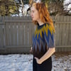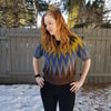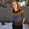 Unlike its Nordic cousin, this sweater has some sections of colourwork that use three colours at a time, short sleeves, and a cropped body length.