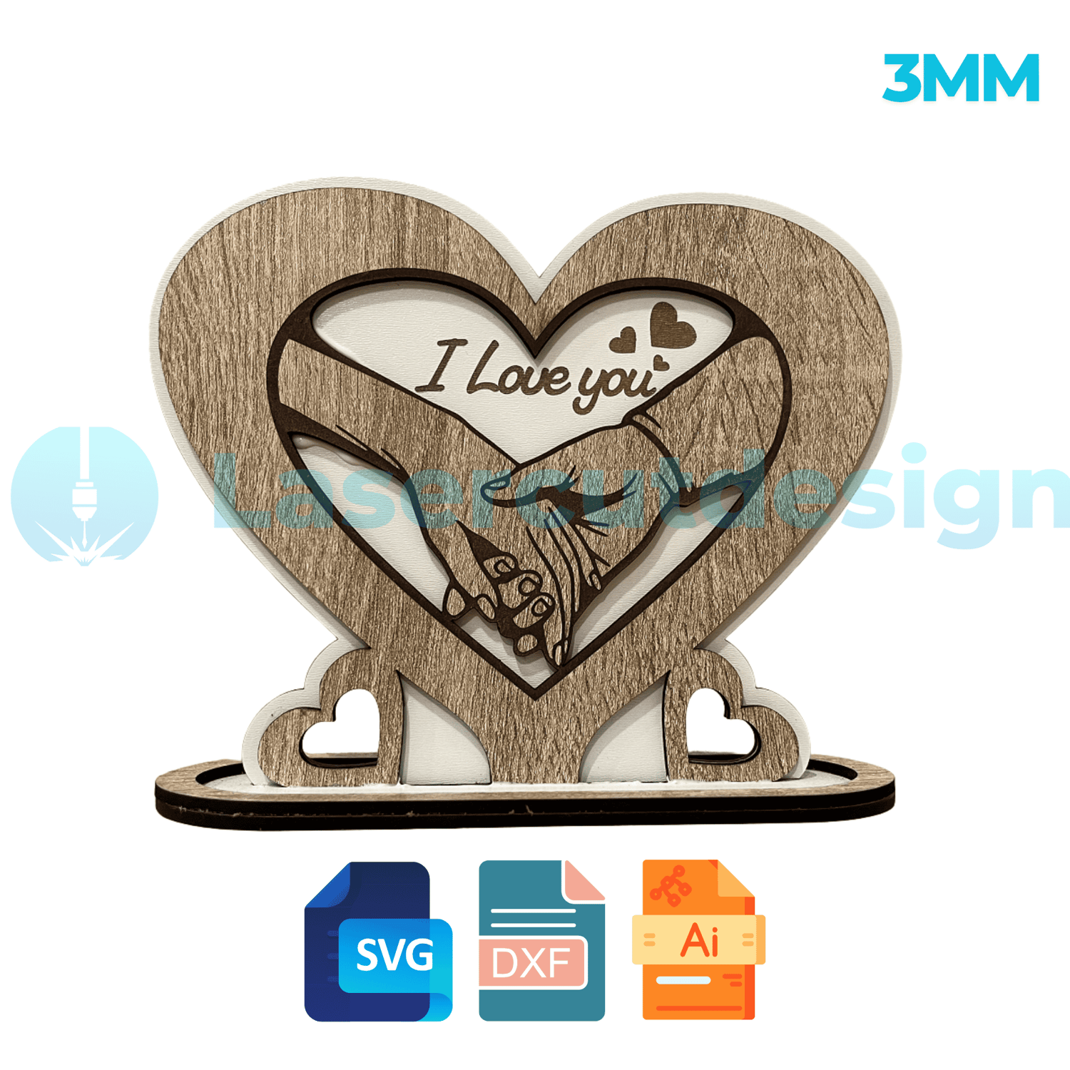 Two Different Types Of Hearts With Hands - Valentine's Day - Women's Day - Files For Laser Cutting, SVG,DXF,AI Files 3mm