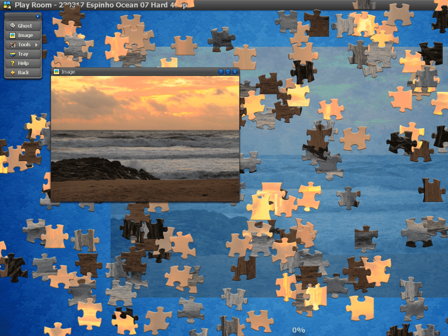 The puzzle game will open in the new window with the pieces scattered across the board.