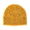 What comes after the golden hour? Sunset — when the sky is ablaze with shades of fiery red!Sunset Slouch is an intricate lace hat that features the same undulating stitch pattern as seen on the Golden Hour Cowl. This hat is knit with one strand of fingering-weight yarn and the other a fluffy lace-weight silk mohair. Two yarns with similar colors will let the lace pattern shine while a high-contrast pairing creates a dramatic look.