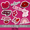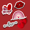 Valentine's Day Stickers with love-themed symbols in pink and red.