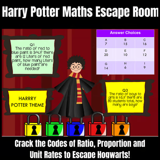 FREE Harry Potter Ratios & Proportions Digital Escape Room | 6th 7th Grade Math Game