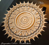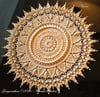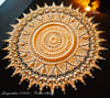 Pattern consists of 46 rounds and measures 16 inches, used around 450 yards of size 20 mercerised cotton thread with 1.75 mm steel hook.