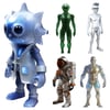 The designs have a cohesive sci-fi theme while each maintaining their unique characteristics. They would make great display pieces or could be used for gaming, collecting, or even educational purposes about space and sci-fi concepts. The varying styles from cute (blue creature) to realistic (astronaut) give this collection broad appeal!