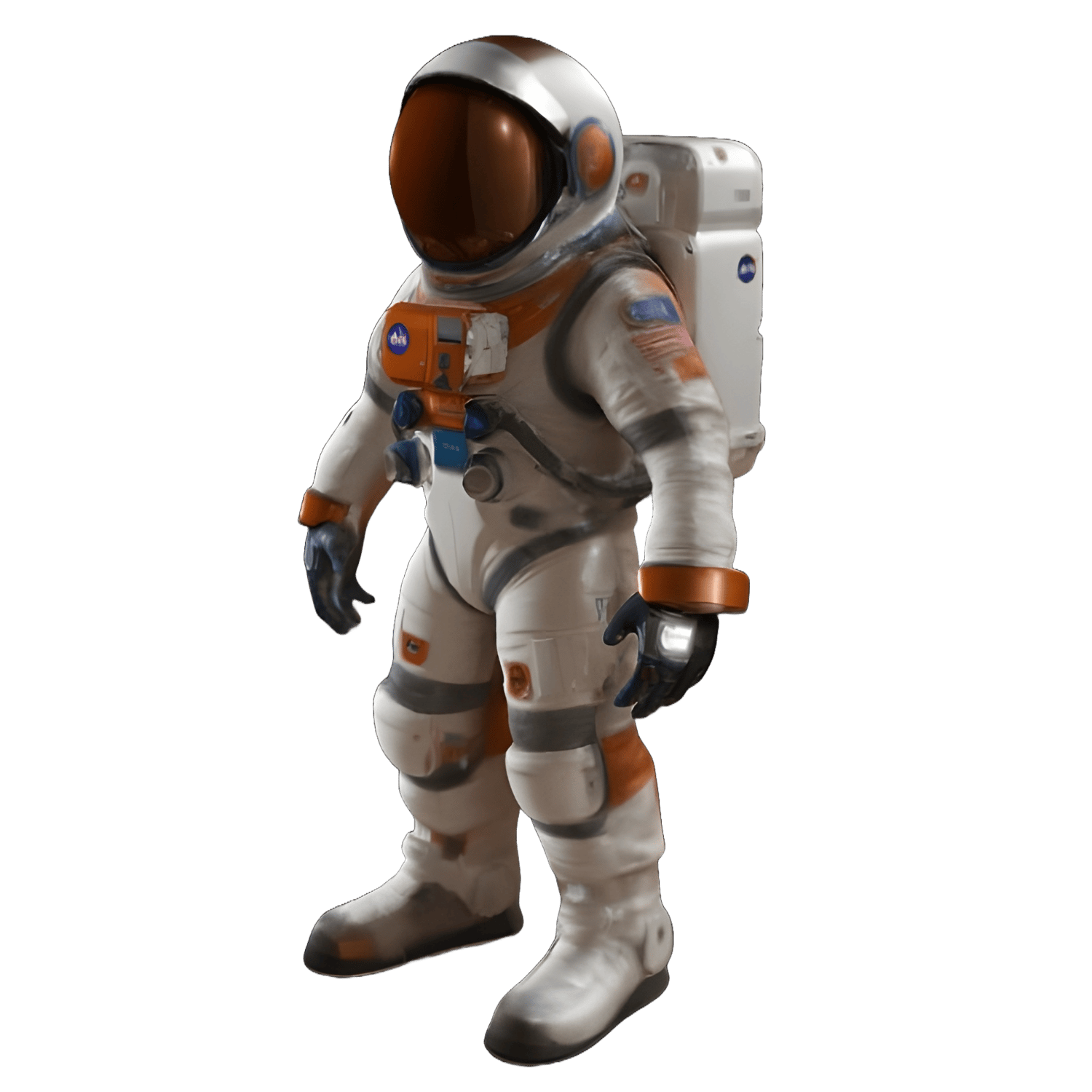- A detailed NASA-style astronaut in a white and orange spacesuit