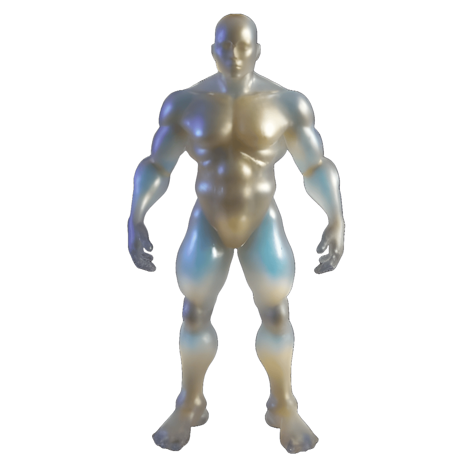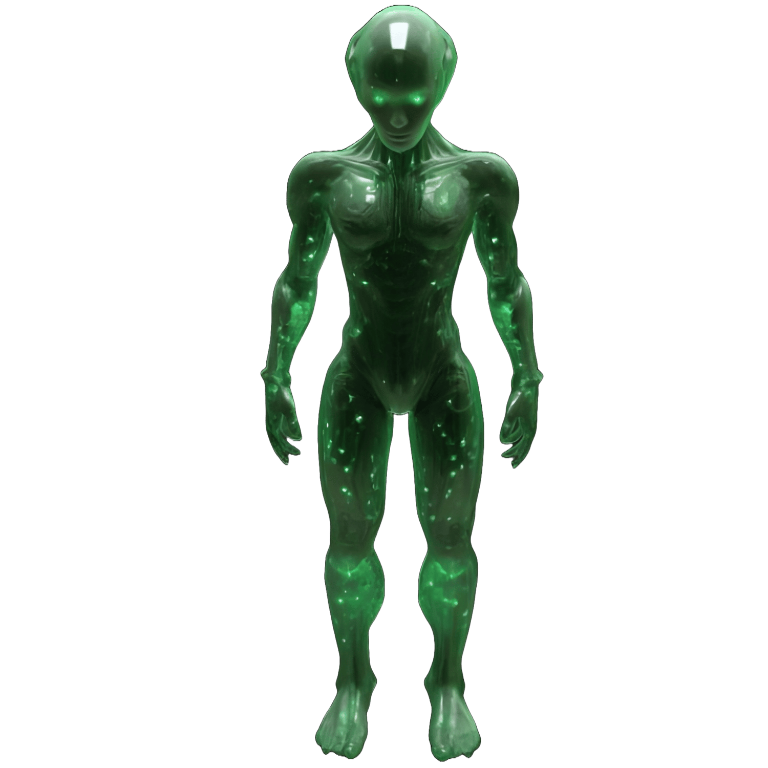 - A translucent green humanoid figure with a sleek, otherworldly design