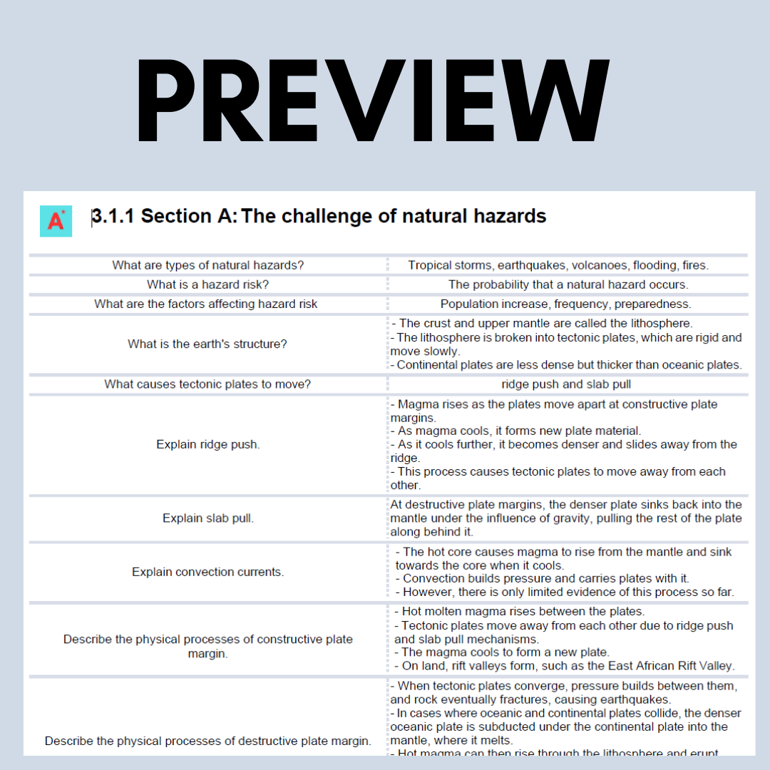 In PDF format, you will receive flashcards comprehensive covering AQA GEOGRAPHY Section A: The challenge of natural hazards.