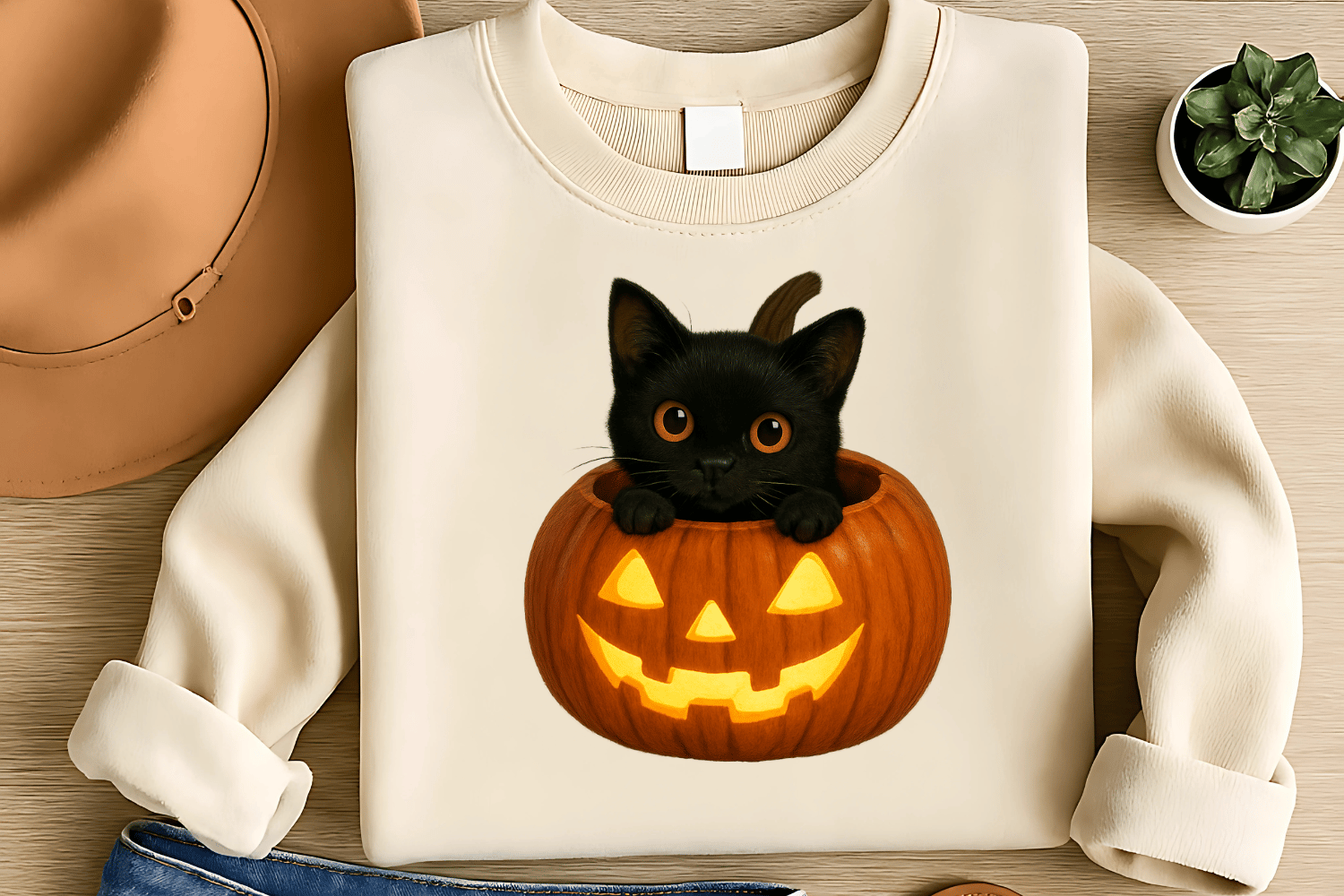 Bring Halloween joy to your creations with this playful black cat and glowing pumpkin design—fun, festive, and perfect for every spooky celebration! 🎃🐾✨