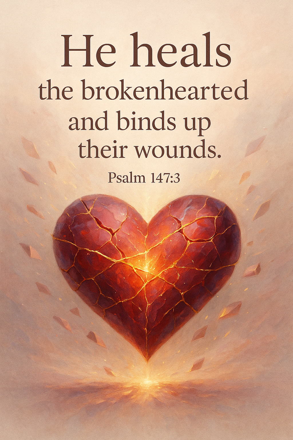 💔✨ Christian Scripture Wall Art – Psalm 147:3 Glowing Heart Poster – Faith-Based Printable for Devotion, Homeschool & Ministry – Healing & Restoration Theme