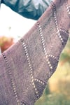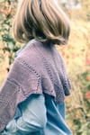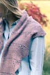 Dulcene is a gentle and shallow elongated triangle, worked side to side in a soft and yielding silk & wool yarn. Repeating textured eyelet rows accent the stockinette body, and grow organically into short row garter ruffles at the lower edge, giving this belle a delicate and feminine charm. Dulcene is part of Three Belles and One Beau, a collection featuring three diverse sideways shawls with short row details, plus one simple sideways textured wrap.