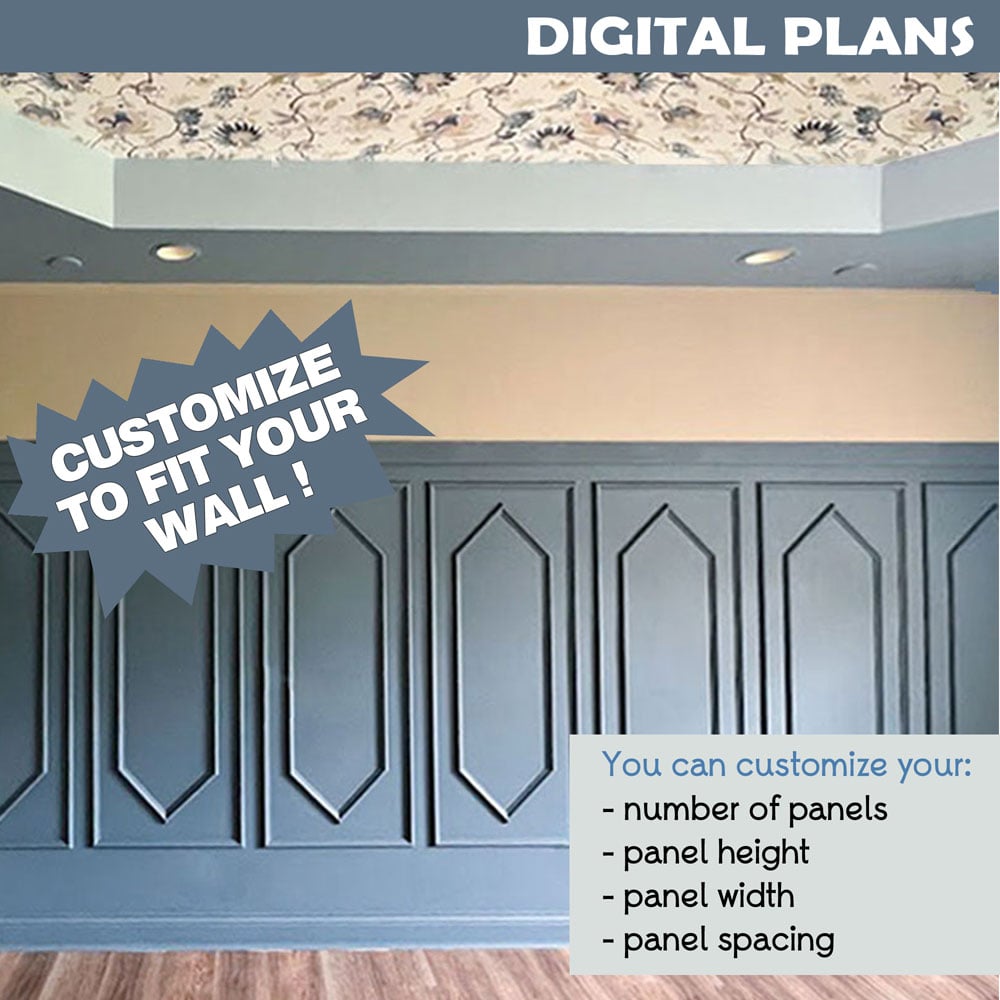 If you're installing creating an accent wall with Faceted Box Trim Molding like ours, you'll need these build plans to complete the job! Packed full of step-by-step instructions, measurements, formulas, and worksheets, these plans have all the details you need to customize this design for any size wall.