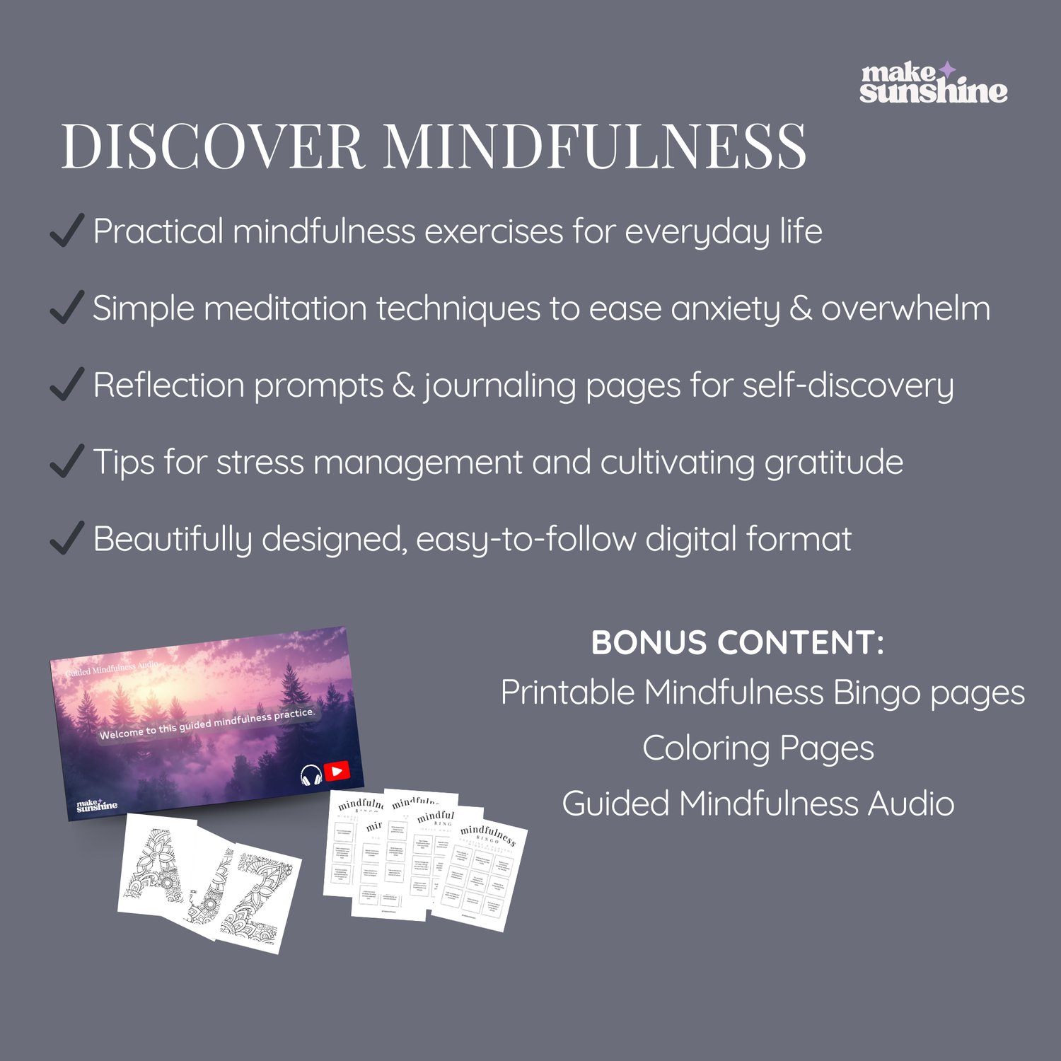 Mindfulness for Daily Living: A Practical Guide to Reduce Stress & Find Balance | Printable PDF plus audio and coloring page bonuses
