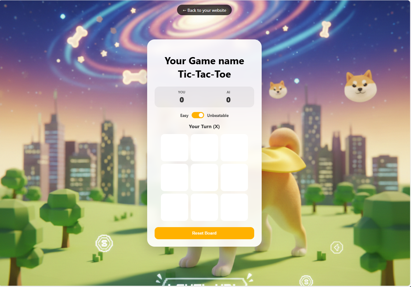 Tic Tac Toe Mini‑Game Template by ShibaMemeGen.com — Fully Customizable & Ready to Install