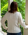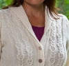 The body of this cardigan is worked in one piece from the bottom edge to the armholes, then back and fronts are worked separately to the shoulders. The sleeves are worked flat from the bottom up, then sewn into the armholes. The front bands/collar are worked at the same time as the body, and the collar is shaped at the shoulders using short rows, then joined at the back using 3-Needle Bind-Off and sewn along the back neck edge.