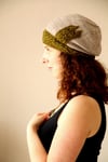 Smooth stockinette is spiced up with a leafy lace pattern that twines around the cuff and brim. Make it two-toned for a color-blocked look, or use all one color to create a bewitchingly subtle piece.