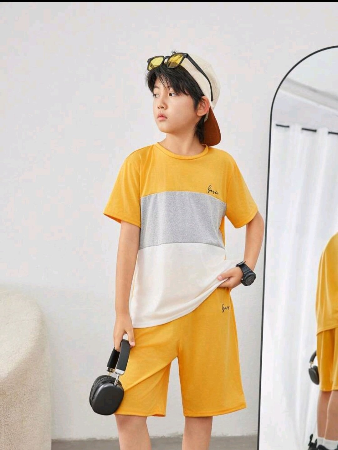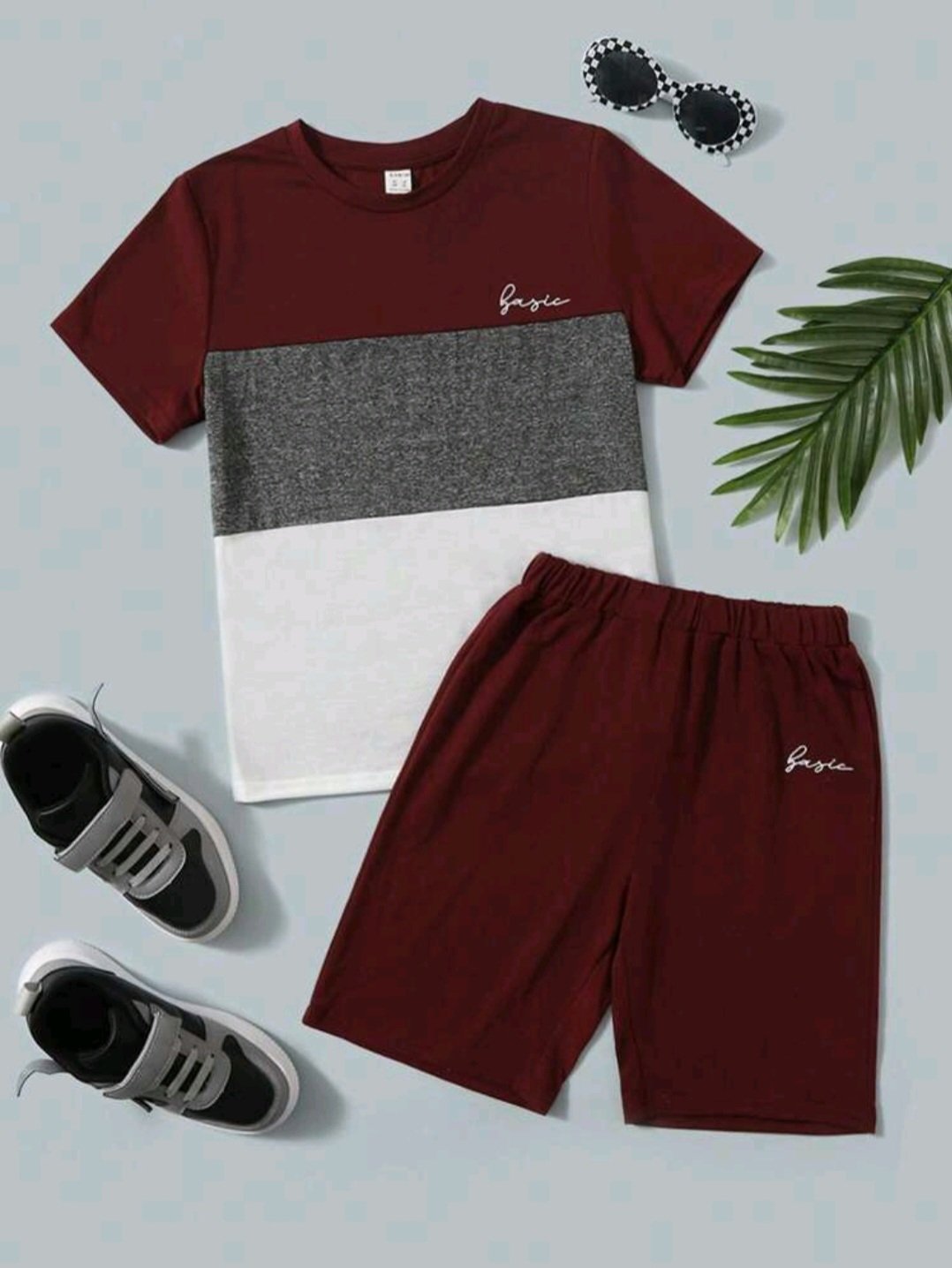 Tween Boy Letter Graphic Colorblock Tee And Track Shorts Set