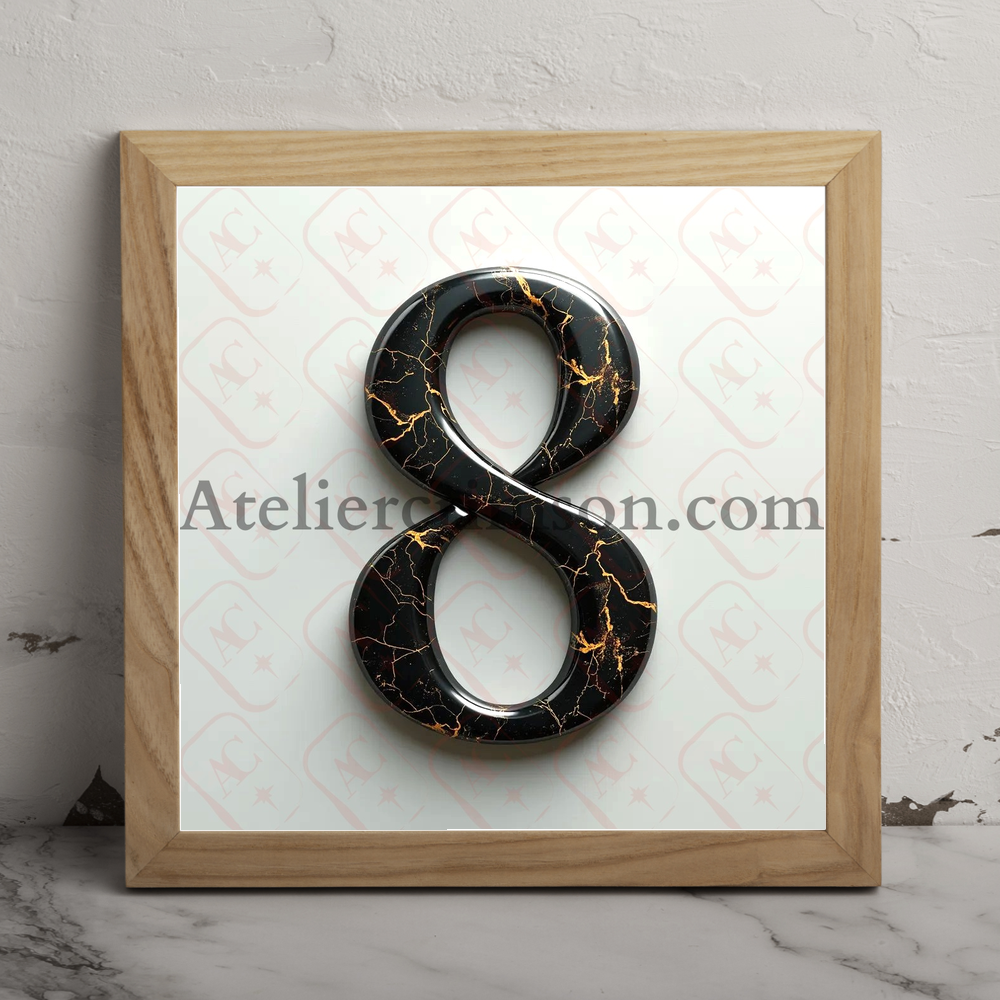 Number 8 luxury black marble and gold. Download now this high quality AI-generated digital image.