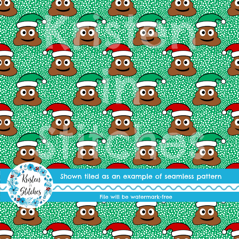 Merry Shitmas Christmas Poop Emojis Santa Hats Sarcastic Christmas Seamless Pattern