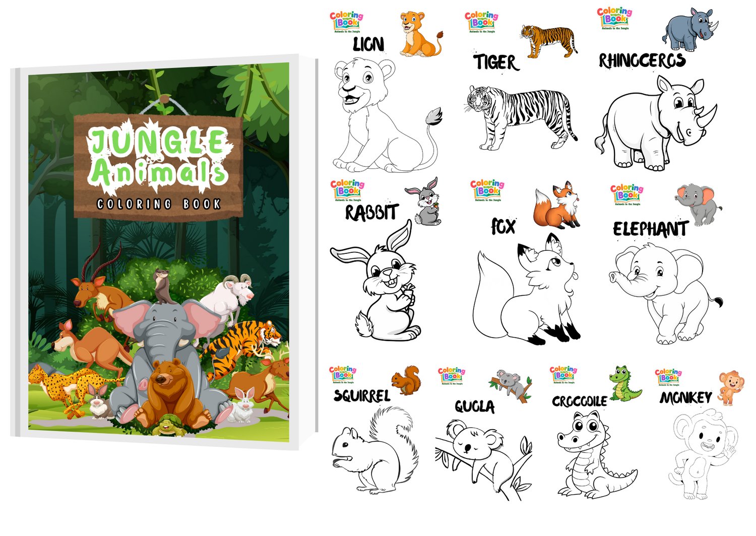 - π¦ Jungle Animals Coloring Book β Explore the jungle with bold and fun pages featuring lions, elephants, monkeys, and more!