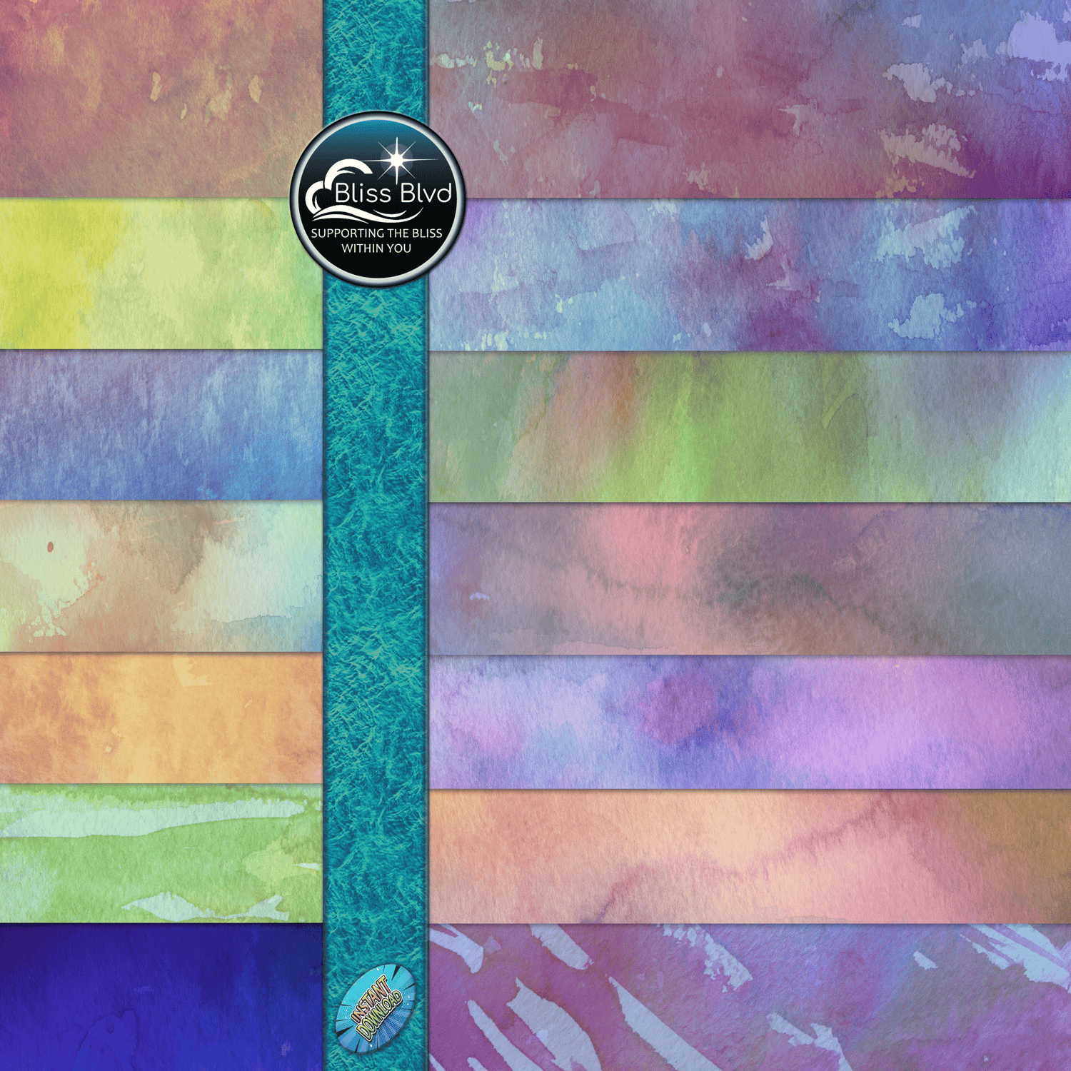 This bundle volume 1 consists of various watercolor background digital papers featuring vibrant rainbow texture blends. Great to adjust and print out for wrapping paper, scrapbooking, invitations, any of your creative designs, and beyond. These are in a seamless format, making them ideal for large prints or web backgrounds!