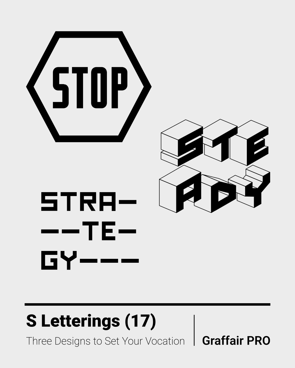 S Letterings (17): The 17th set of three original "S" logo lettering designs to edit and evolve your typography on your visual branding project. These letterings are part of the "800 SVG Letterings" bundle, which also contains 800 other exceptional designs.