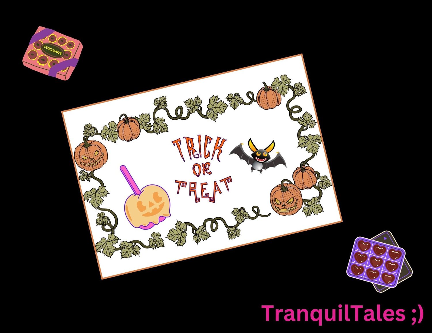 CARD TYPE – Halloween Card for Babies / Children / Teenagers - Trick Or Treat - Funny Greeting Card On A Perfecto White Background To Gift Your Close Friends, Little Brother / Sister Or Anyone You Wish To Gift For Halloween Night