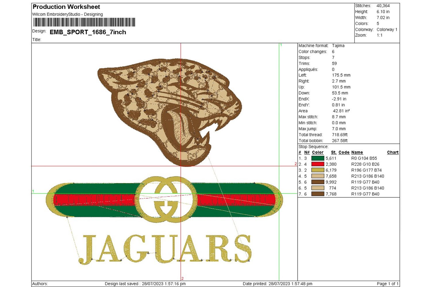 Guc.ci Jacksonville Jaguars Logo Embroidery Design Files, NFL Jaguars, NFL Logo Embroidery Files, NFL Jacksonville Jaguars Machine Embroidery Design, Digital Downlo