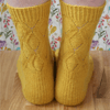 The Lynda socks are knitted from the toe up and use a gusset and heel flap construction, shaped with short rows. The socks have a pattern on the instep and around the leg, while the sole is knitted in stocking stitch. The gusset length is affected by your row/round gauge, so a small amount of optional maths is included to achieve the perfect fit.