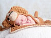 Capture timeless moment during baby's inaugural photoshoot with a darling Spaniel puppy hat, diaper cover, and snuggly blanket! This pattern is written row-by-row using US crochet terms, including crochet diagrams, step-by-step photos, and a conversion chart to UK terms.