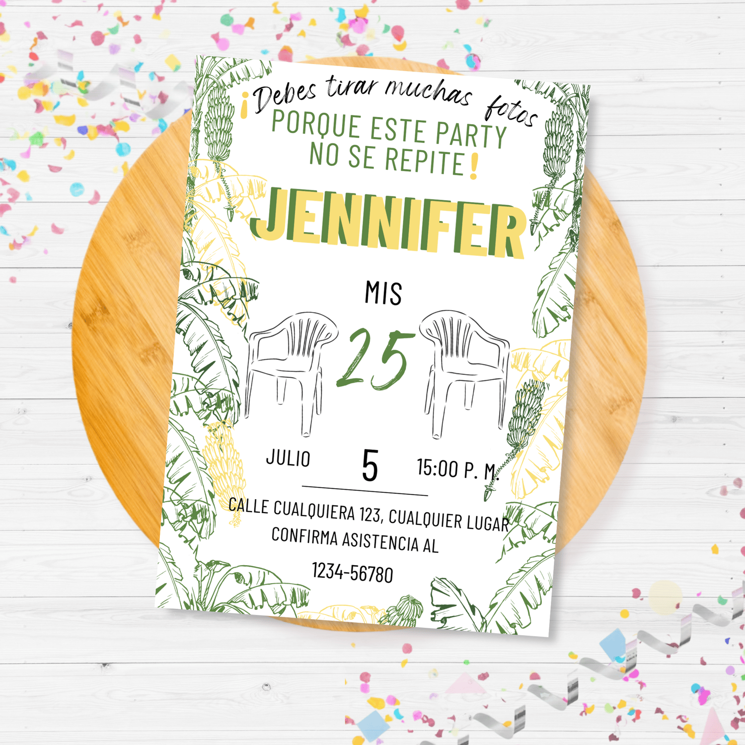 Invite your friends to a birthday full of style and urban music with our digital invitation inspired by Bad Bunny's latest album. With a design that captures the tropical essence and laid-back vibe of his music, this invitation is ideal for those who want to stand out with something different and original.