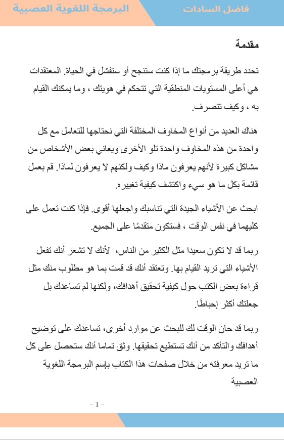 وثق تماما أنك ستحصل على كل ما تريد معرفته من خلال صفحات هذا الكتاب بإسم البرمجة اللغوية العصبية