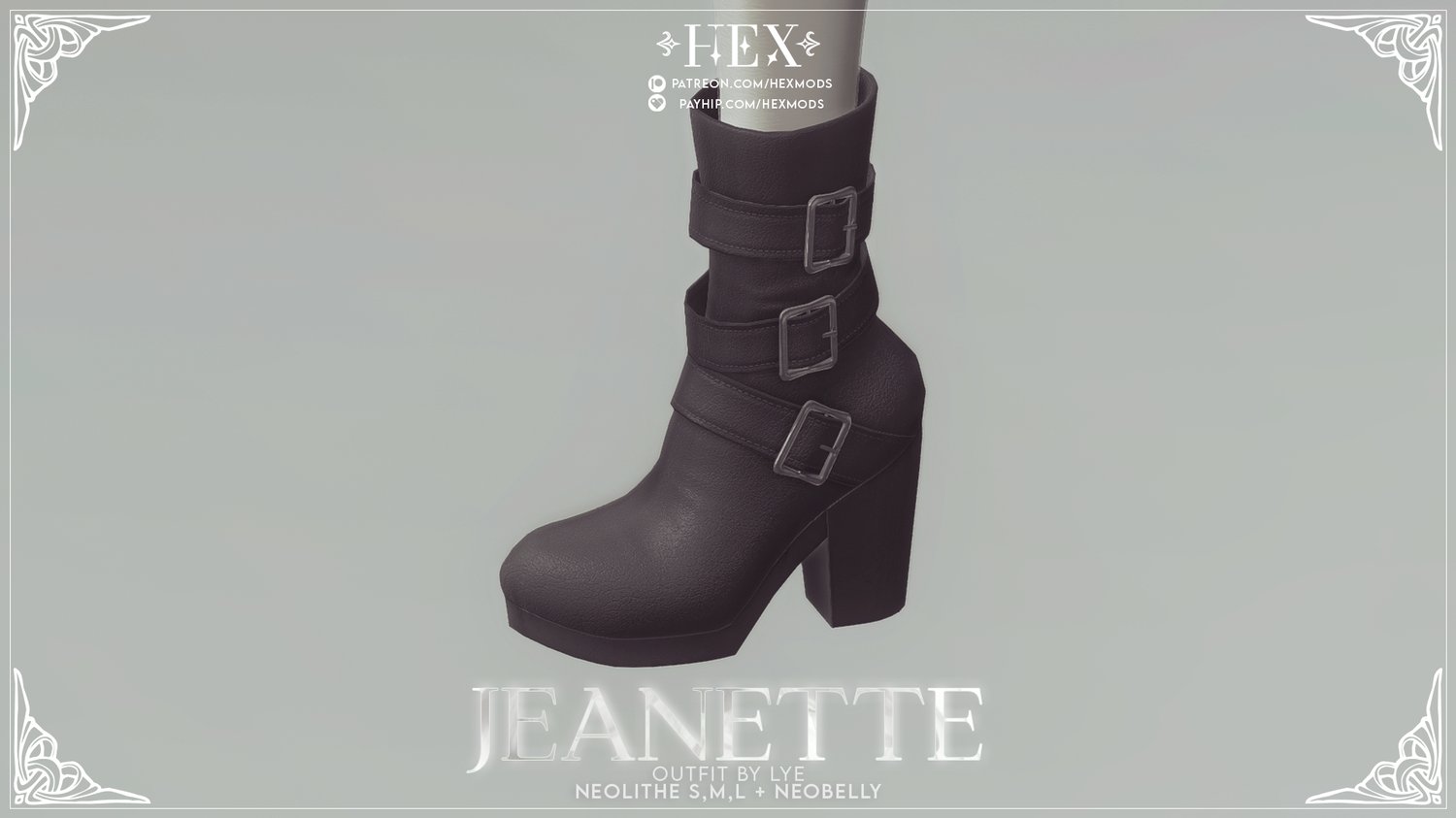 - shoes are fitted to Neolithe default calves but might work with other bodies