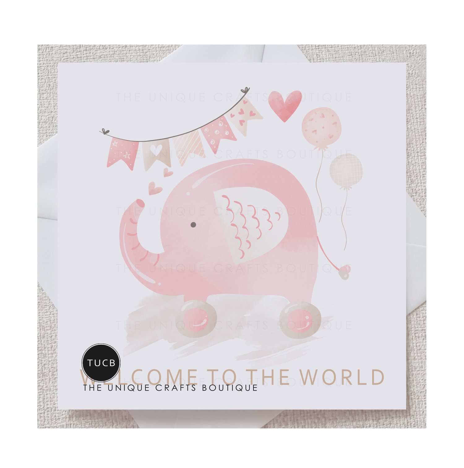 This card is perfect for the celebration of a beautiful new baby. Printed with a sweet baby toy in lovely pastel pink and brown shades and with a message reading 'welcome to the world' this card gives the perfect finish to welcome a new little one.