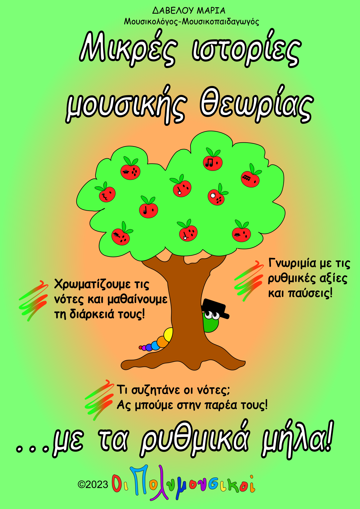 Οι Μικρές ιστορίες μουσικής θεωρίας... με τα ρυθμικά μήλα μας παρουσιάζουν τις πρώτες ρυθμικές αξίες και παύσεις μέσα από μικρούς διαλόγους ανάμεσα στα μουσικά σύμβολα!