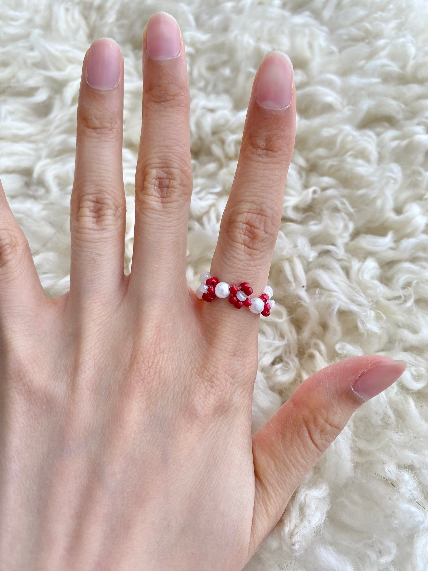 A soft and elegant ring featuring a delicate white flower at the center, framed by tiny clear and pearl-like beads. Light, graceful, and perfect for any occasion!