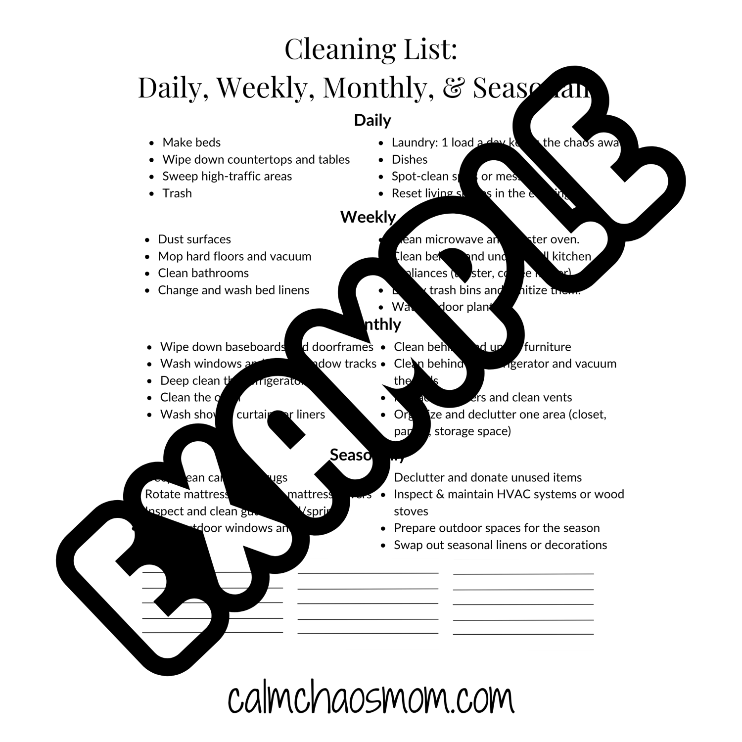 ✨ Daily, Weekly, Monthly, and Seasonal Cleaning Sections: Simplify your routines with tasks tailored to every timeframe.