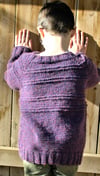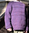 Our city’s full of train tracks, rail yards, and the sound of the freight train’s whistle and clunk. This simple child’s raglan sweater uses garter stitch tracks on the yoke to evoke the magic and power in the music of the rails. Knit from the bottom up in the round, this design uses written instructions, and a schematic. The sweater is completely reversible. If the kid spills on the front…turn it around. It requires virtually no sewing at the end, just weaving in ends and joining up the underarm stitches.