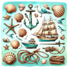Nautical Ropes and Knots: Detailed but softened representations of ropes and knots, often in shades of brown or beige.