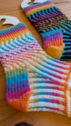 Knitting from the top down with a heel flap and ending with a round toe these are based on my basic sock pattern so are