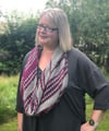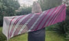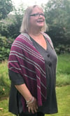 Frogner is a light but warm stole which can be converted to an infinity scarf by seaming, or the addition of buttons along one short edge. The stole is knitted on the bias which is highlighted by the simple lace pattern and stripes.