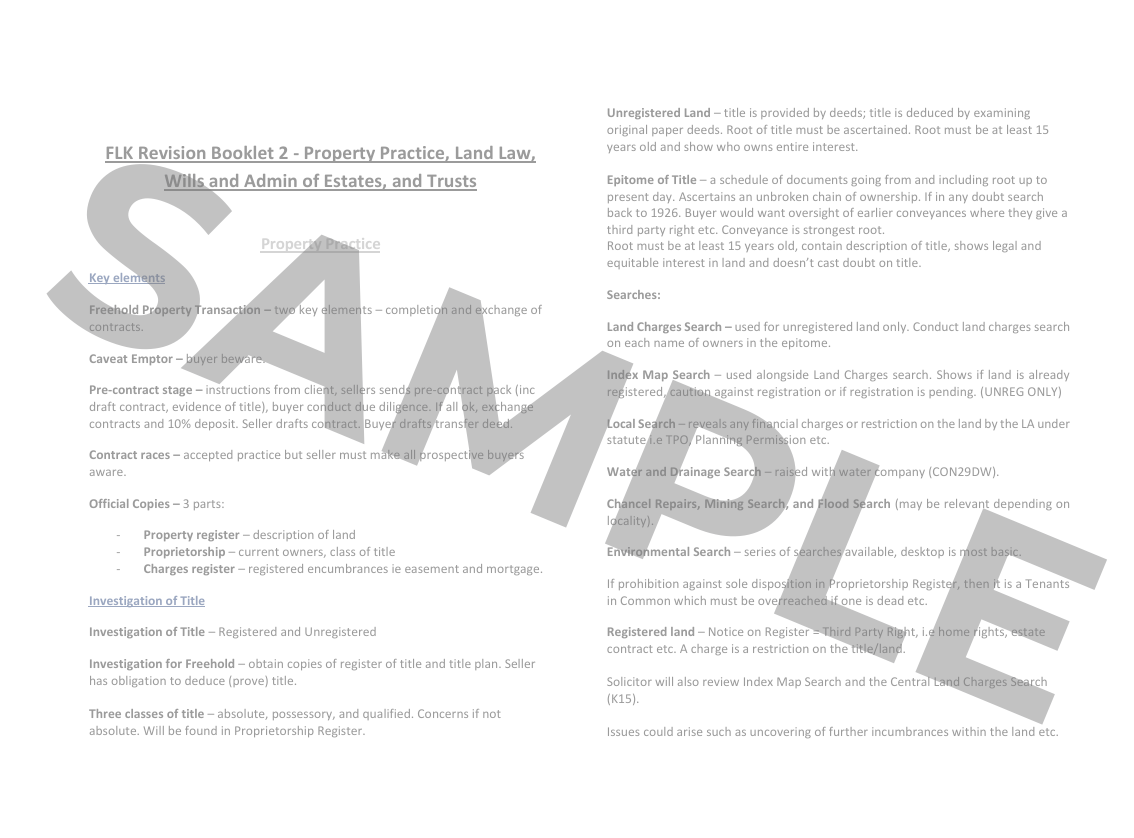 SQE Notes - Property Practice & Land Law