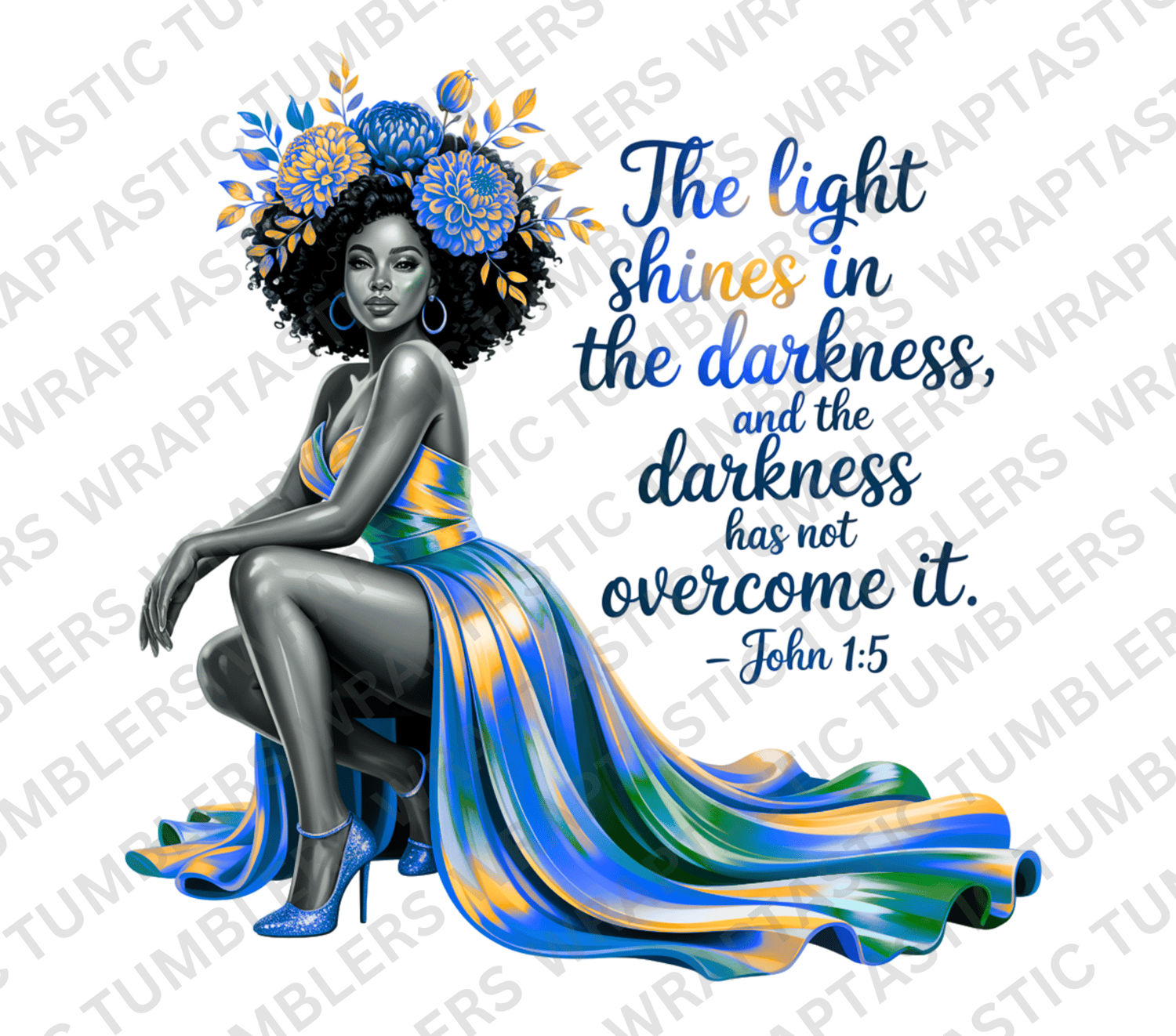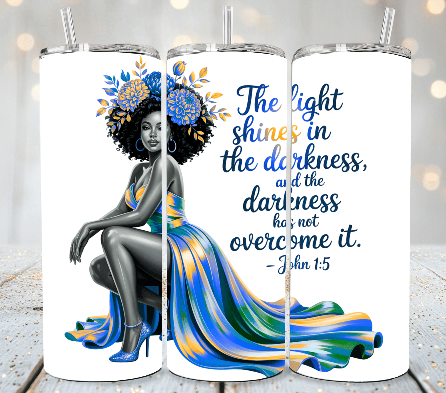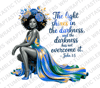 The Light Shines in the Darkness John 1:5 Bible Verse Tumbler Wrap Christian Black Woman PNG, Sublimation, Faith Scripture Clipart