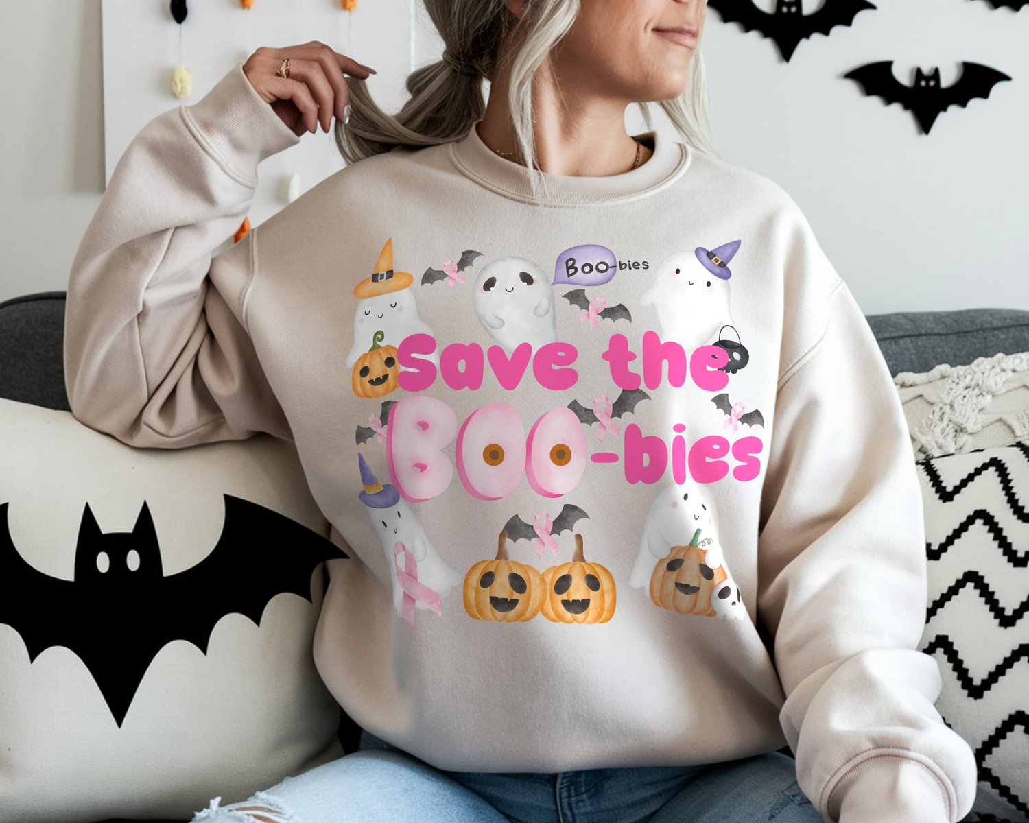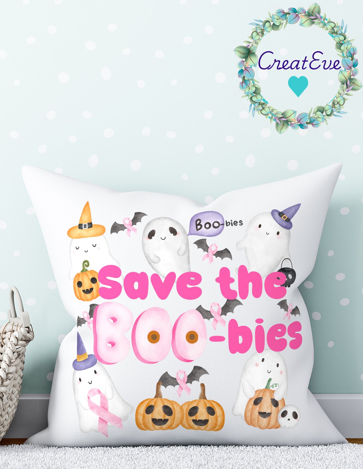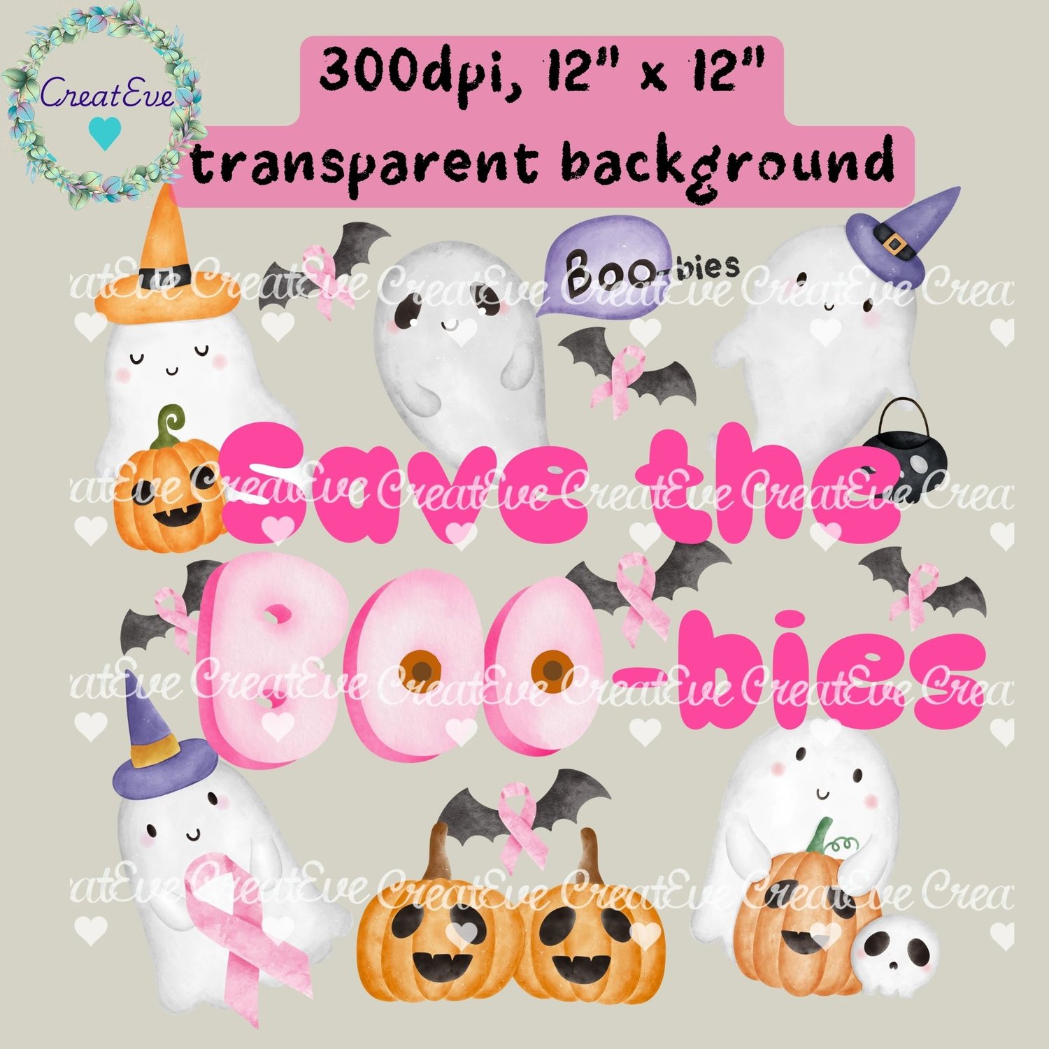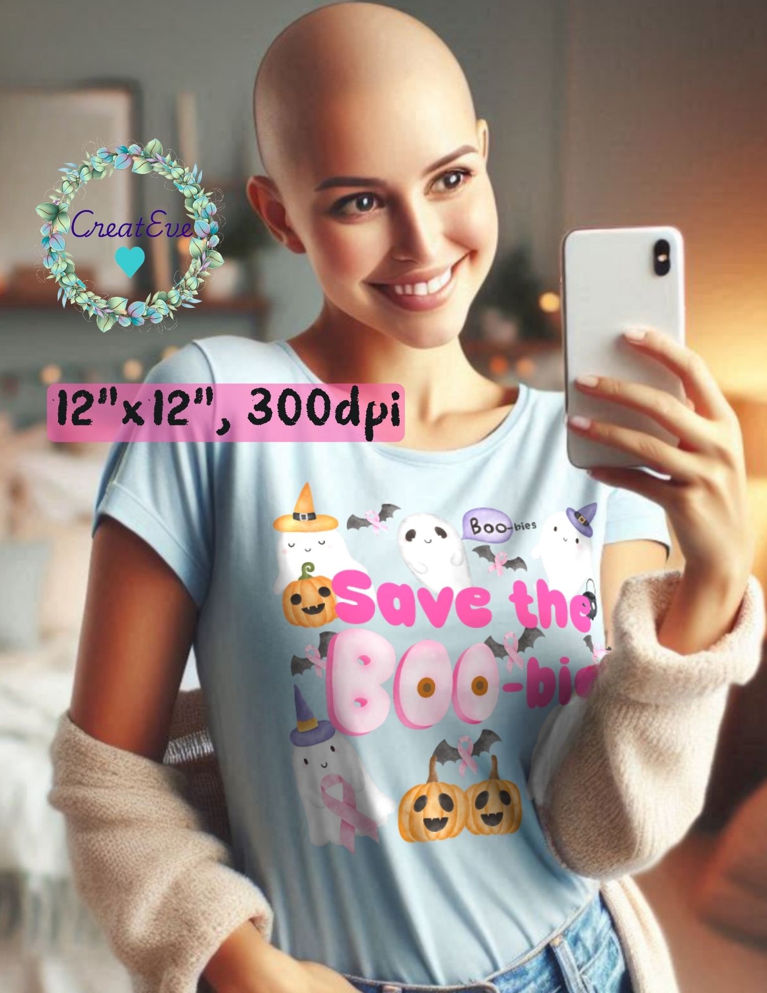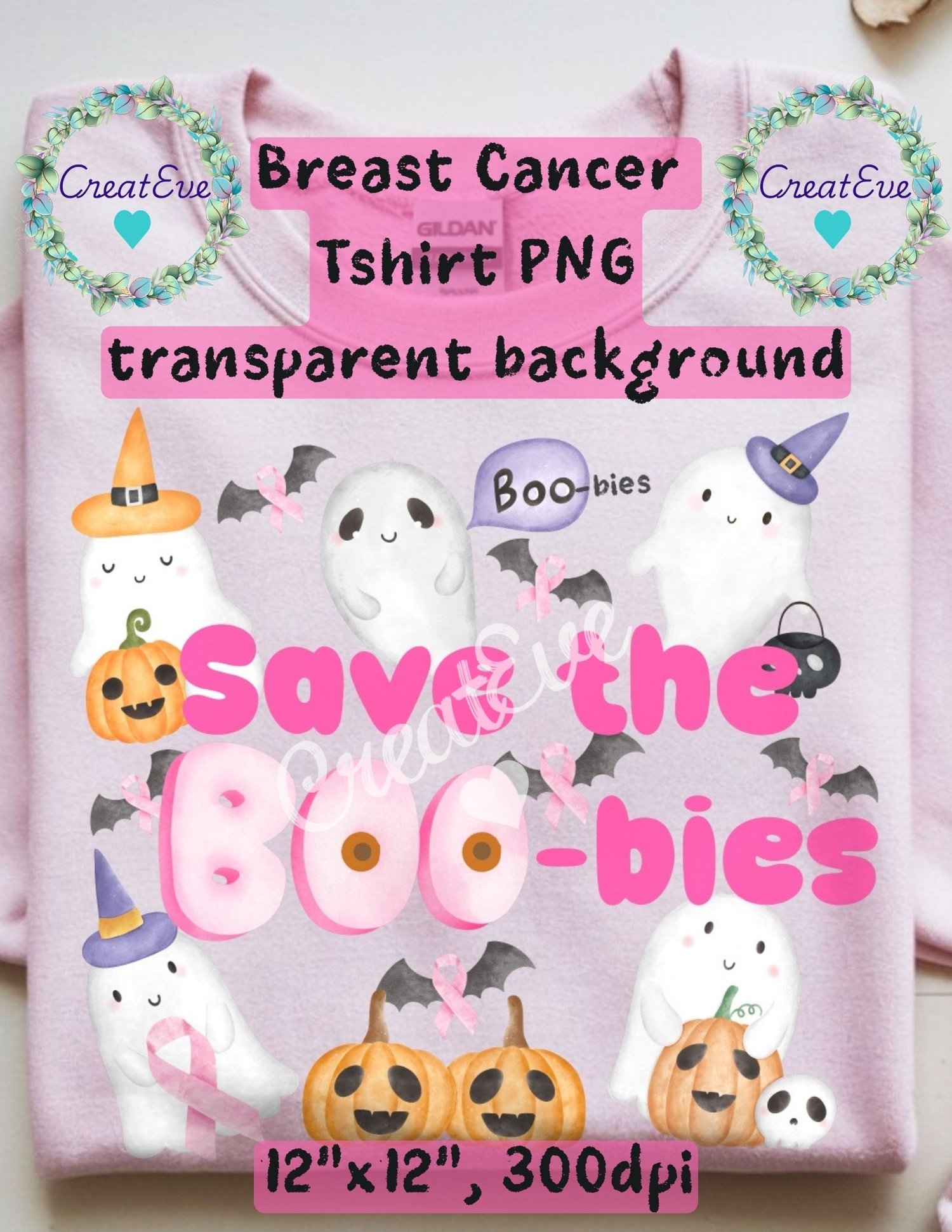 Breast Cancer "Save the Boo-bies" Awareness T-Shirt PNG, 300dpi, 12"x12", Transparetn Background