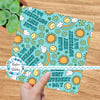 Same Shit Different Day sweary rainbows, sunshine, flowers and happy faces on blue.