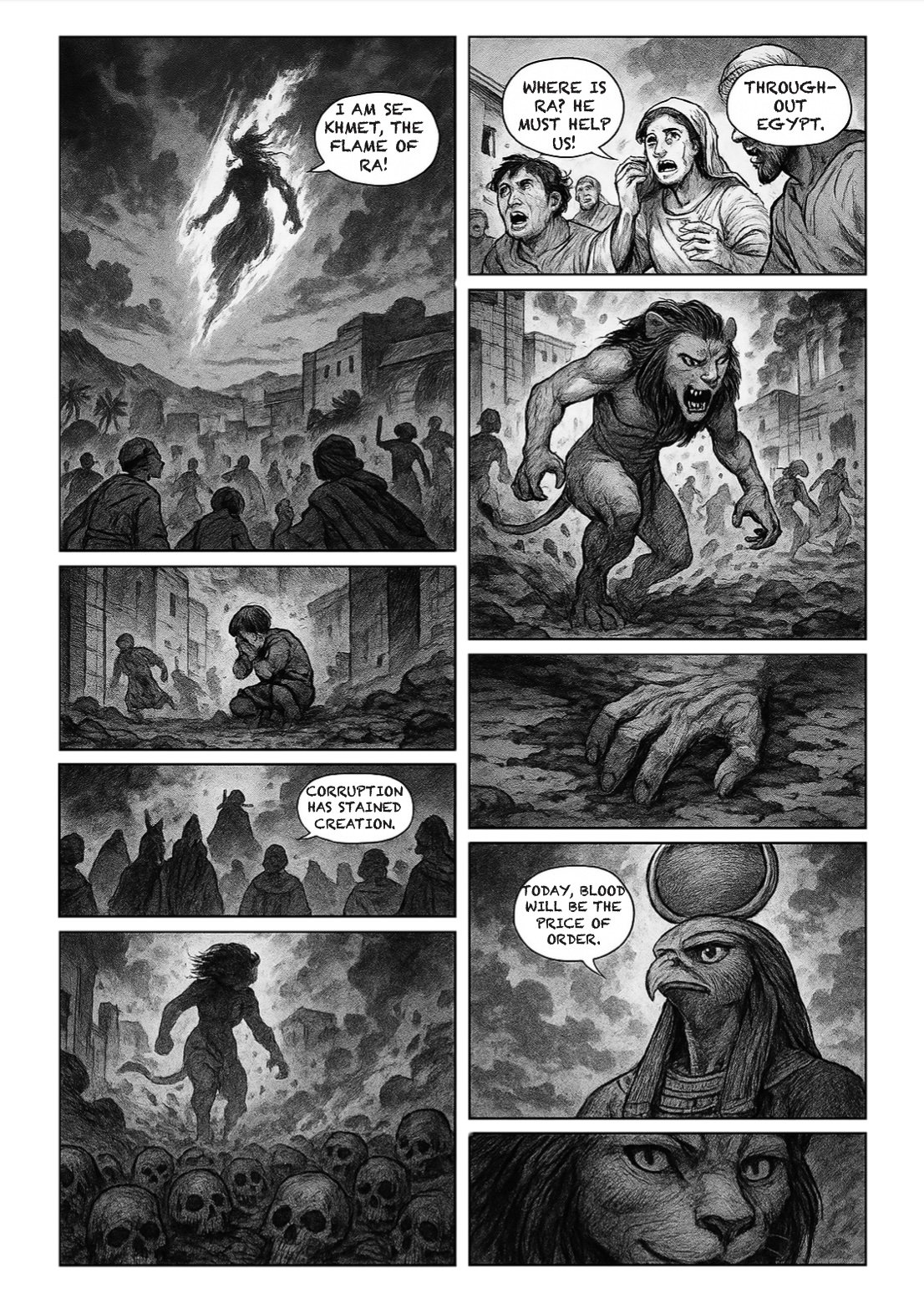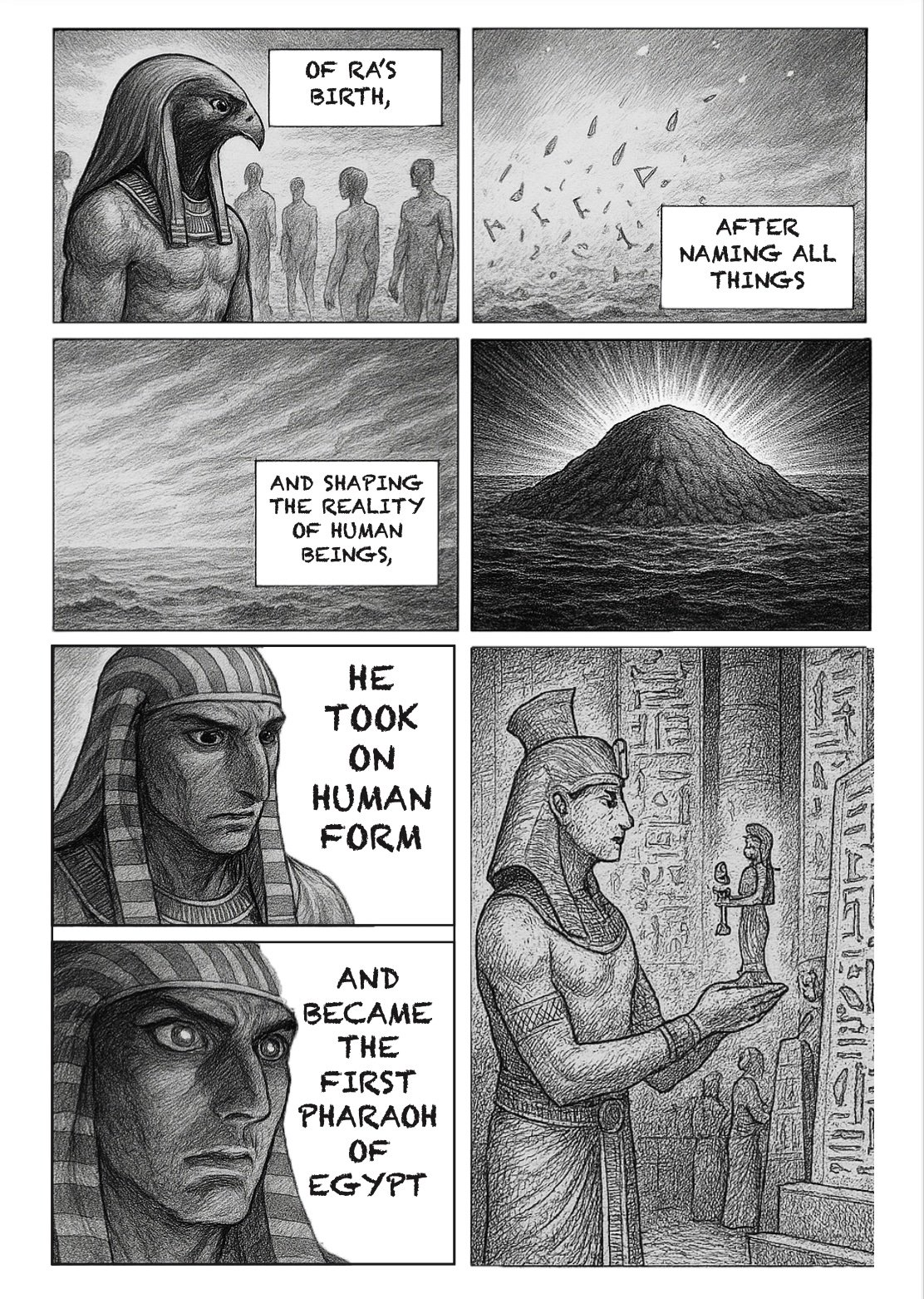 The Secret of the Name: The Cult of the Hidden is an illustrated comic that retells the timeless myth of Ra, Isis, and the secret name — a story of power, deception, and the mysteries of divine speech.