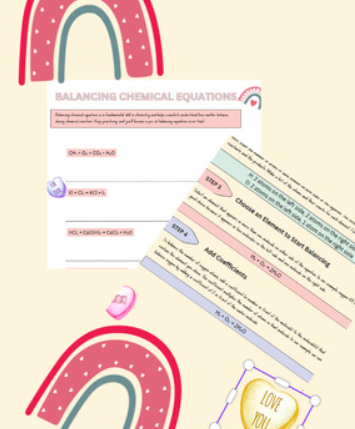 Students will start by reviewing the instructional sheet, learning valuable tips and strategies for balancing chemical equations effectively. They'll then dive into the examples, applying their newfound knowledge to balance equations. Finally, they’ll check their answers with the answer sheet adorned with lovely Valentine's Day imagery.