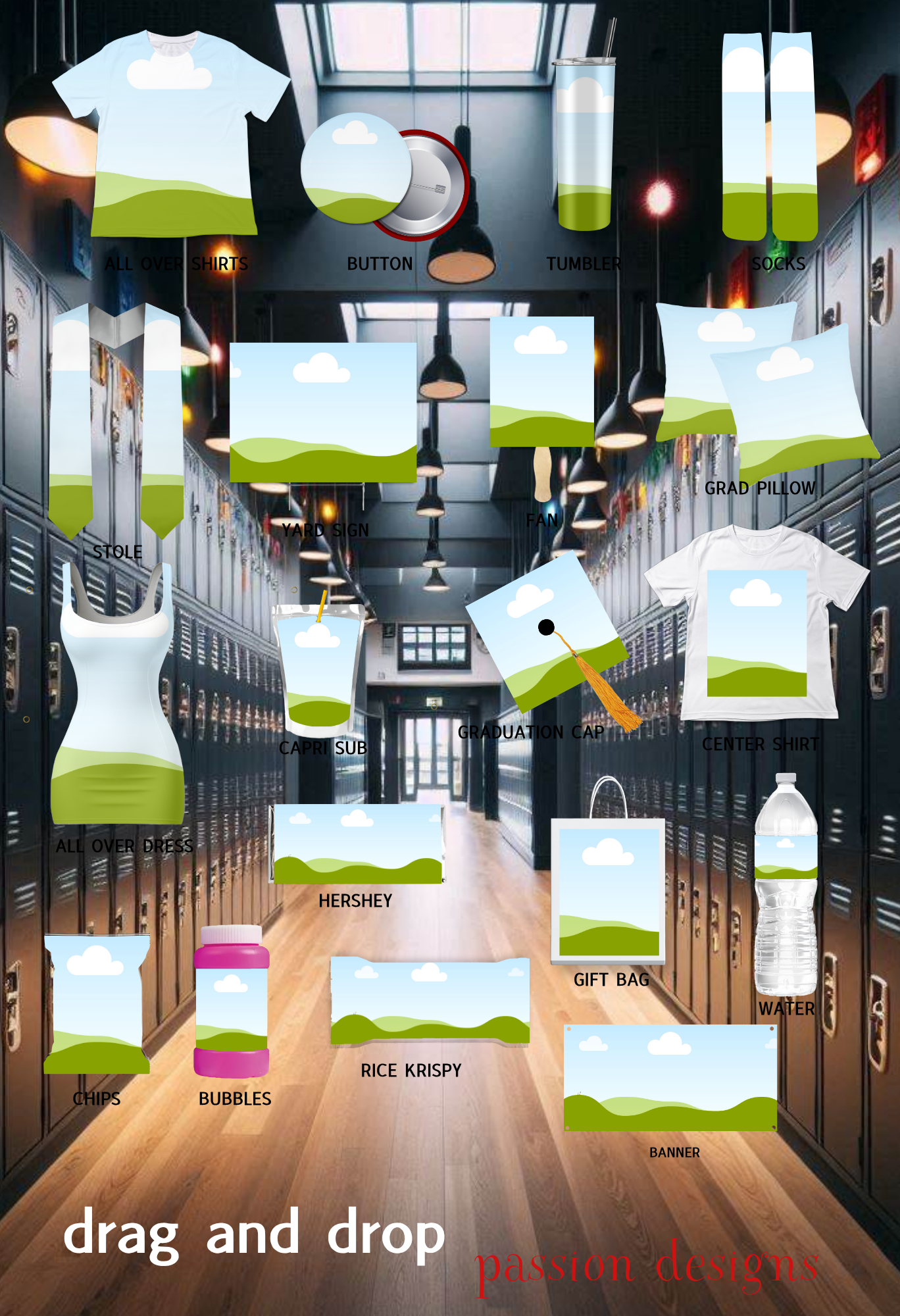 I have set up a mockup for you to display your graduation items with the drag and drop feature to make them look as real as possible.