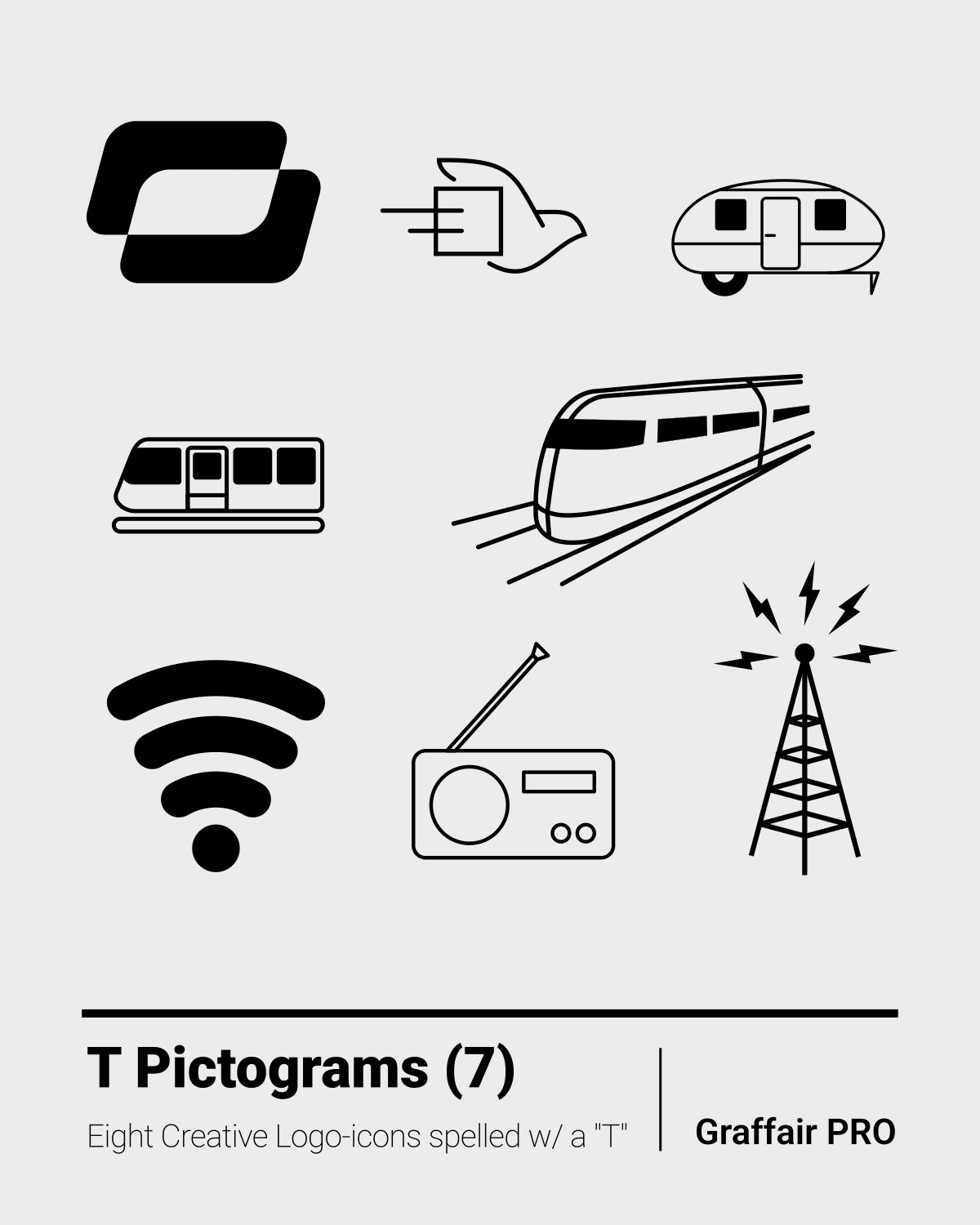 T Pictograms (7): The 7th set of 8 pictograms, each beginning with a "T".