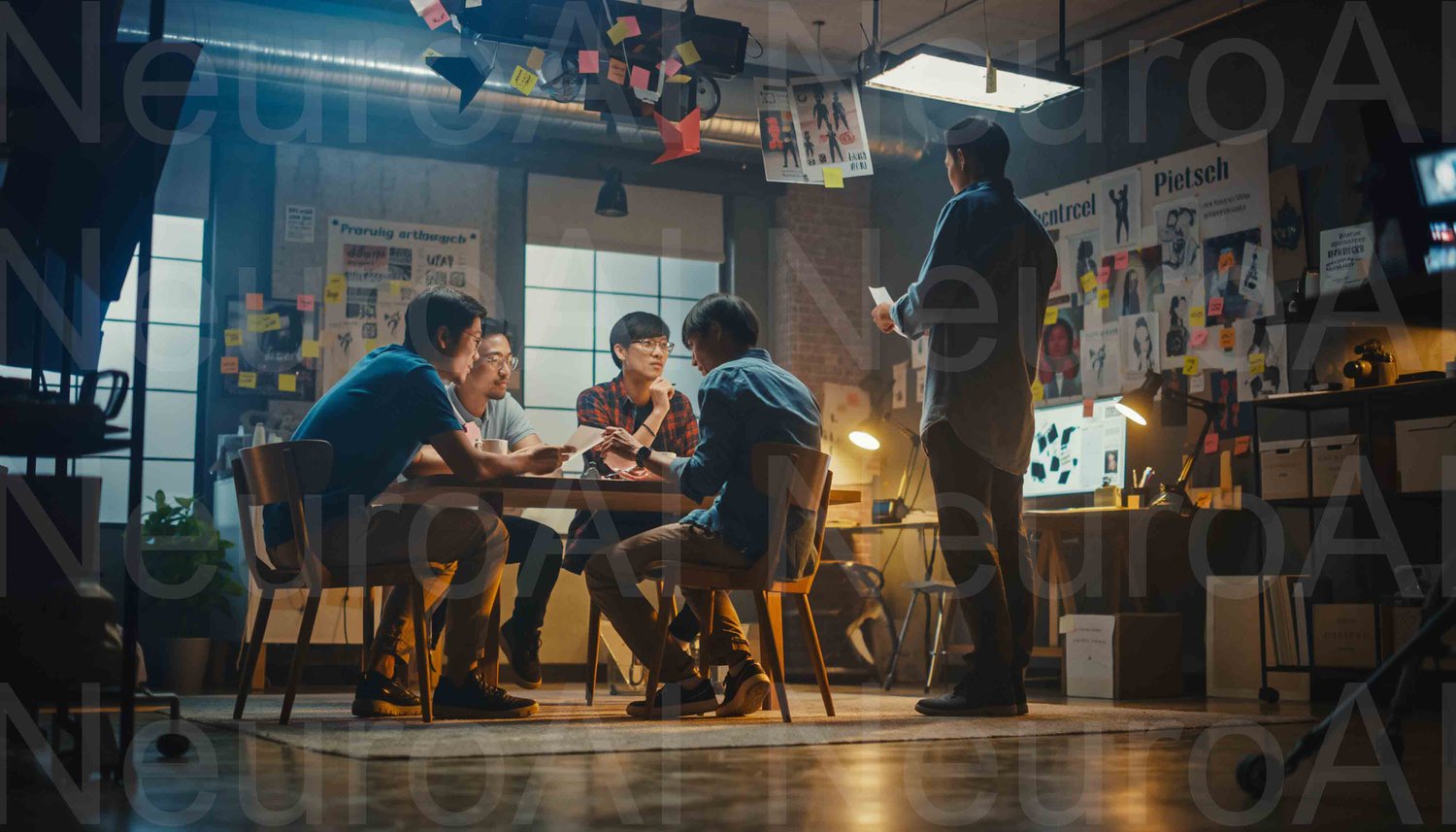 Startup team brainstorms creative ideas together
