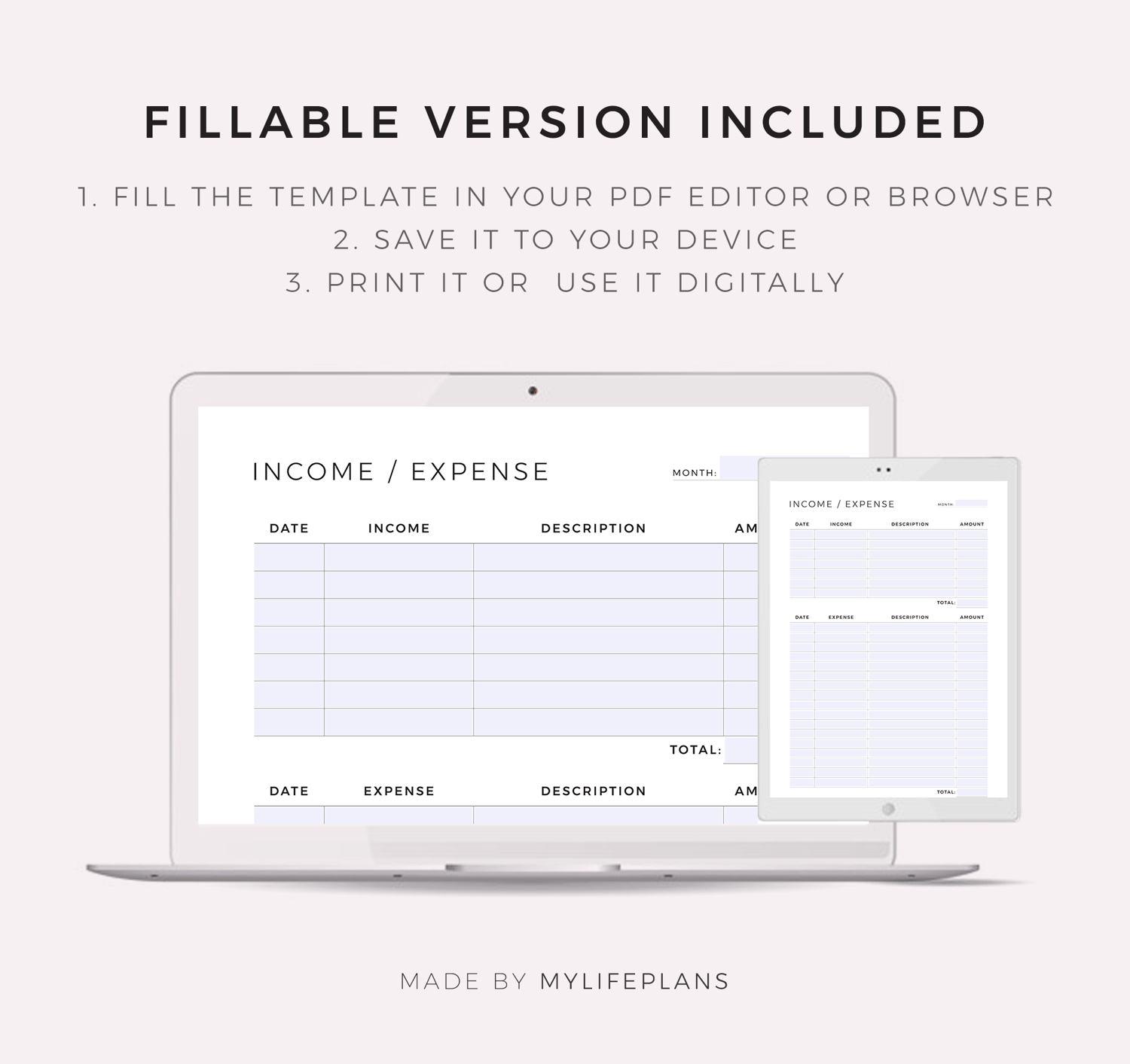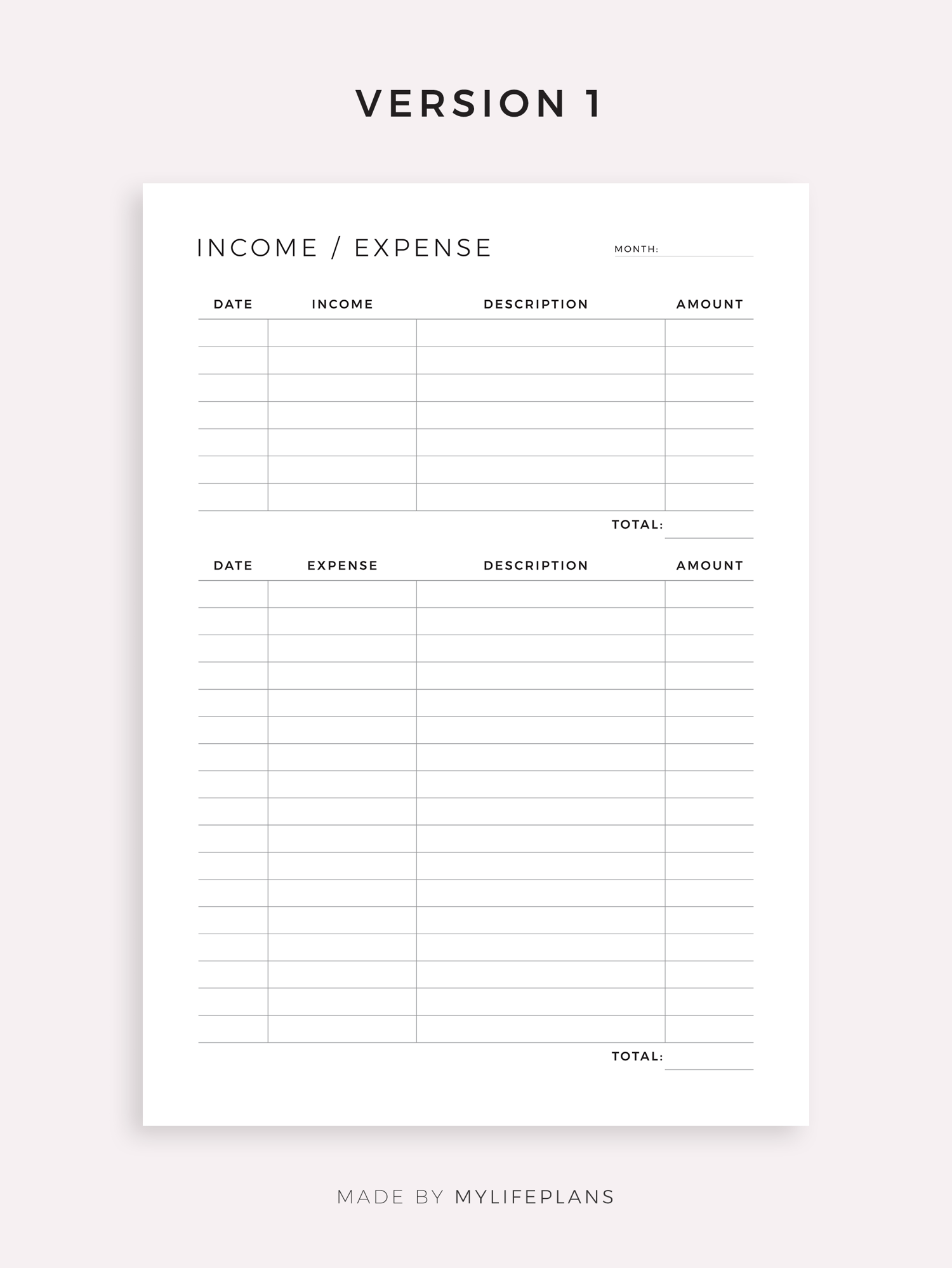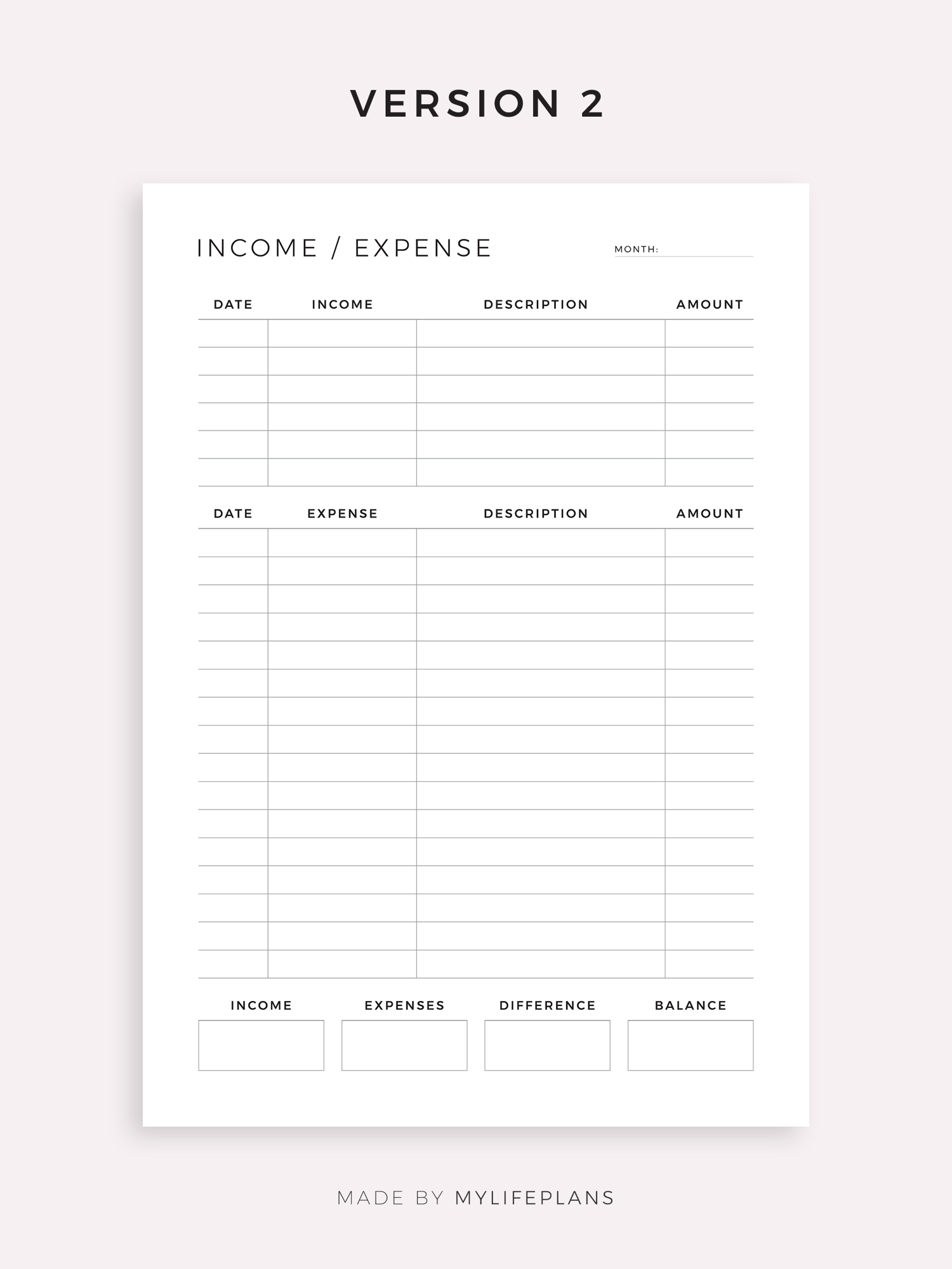 This is a printable income / expense tracker — just download, print, and start using it right away.